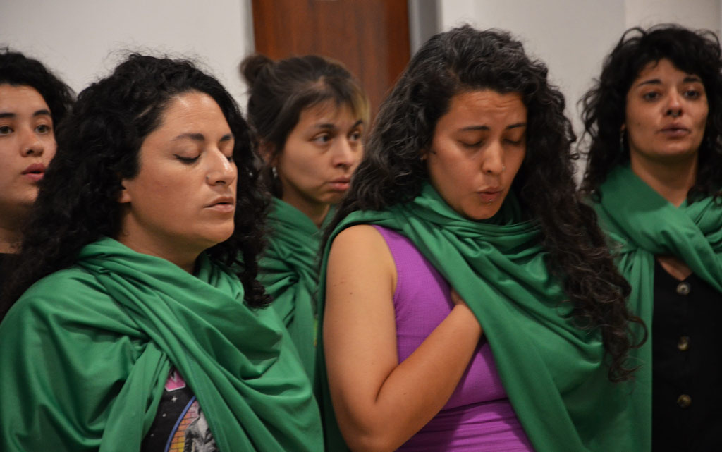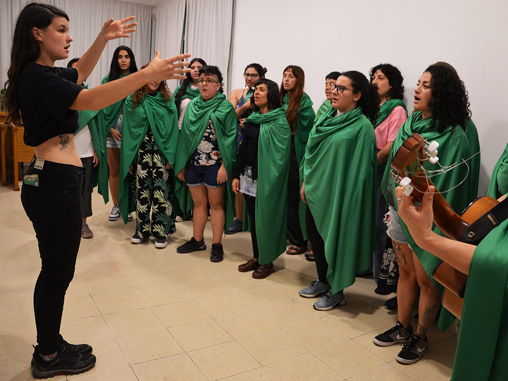 «Qué cantar fue lo primero que tuvimos que consensuar para ir armando nuestro repertorio y en asamblea concluimos que deberían ser temas sobre mujeres y disidencias sexuales, pero con un mensaje político concreto; algo complejo, porque no hay mucho disponible en arreglos de música coral para mujeres», cuenta Giraudo. Empezaron con «Juana Azurduy», «Alfonsina y el mar», «Reverdecer» y las coplas verdes de Mariana Carrizo. «Nuestros ensayos siguieron de manera virtual en pandemia y cuando pudimos salir del confinamiento estábamos preparadas para enfrentarnos al público; comenzamos en las ferias feministas, marchas del Ni Una Menos y del 8 de Marzo, encuentros intercorales y llegamos en muy poco tiempo a integrar la gran función de profesionales en Estudio Theater Showchoir Córdoba y en el Teatro Comedia, seleccionadas con otros 15 coros de mucha trayectoria».